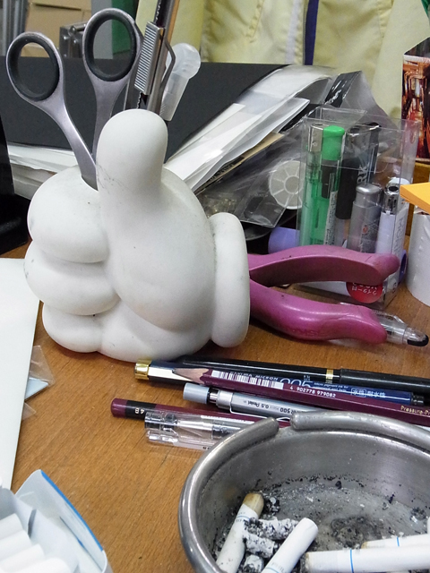 机の上のペン立てが
