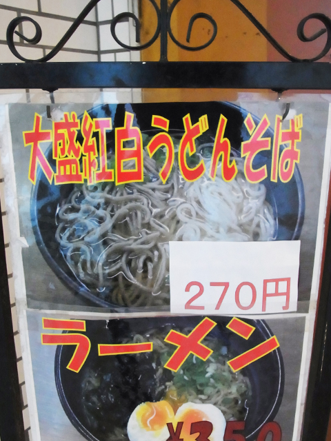 "大盛紅白うどんそば" 紅白じゃ無しに白黒だナ。