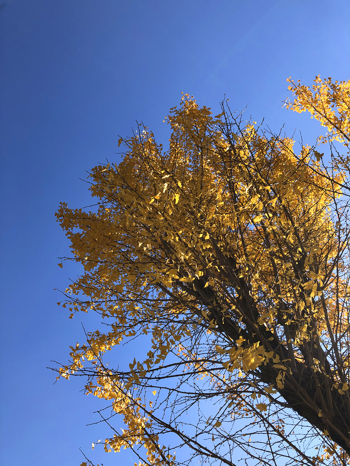 近所のイチョウもまっ黄色。
